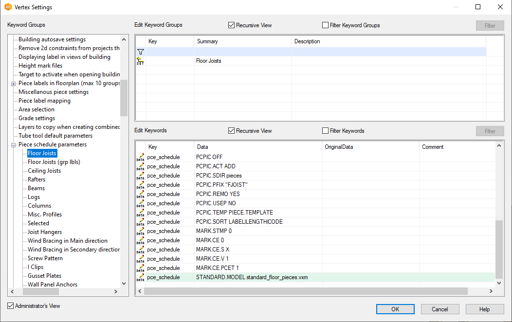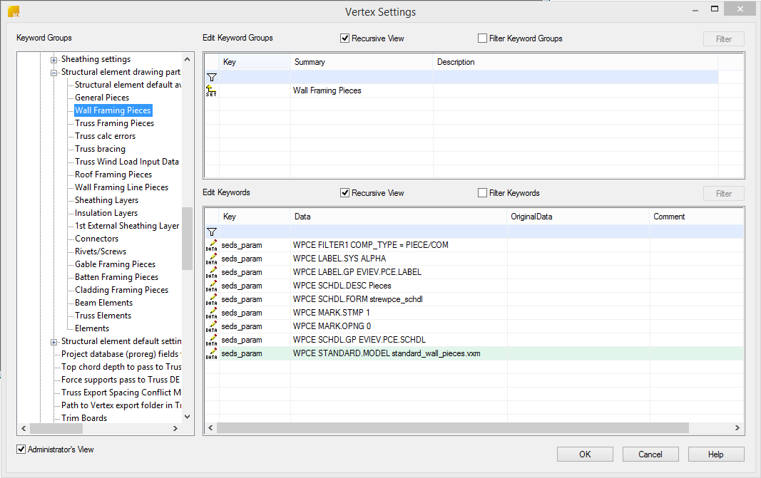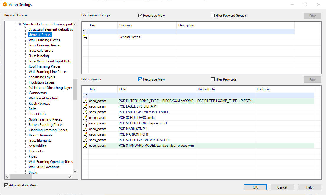 Select File > Preferences > Edit. Select the Administrator's View, and open the branch bdsxx/Structural element drawing partlists.
