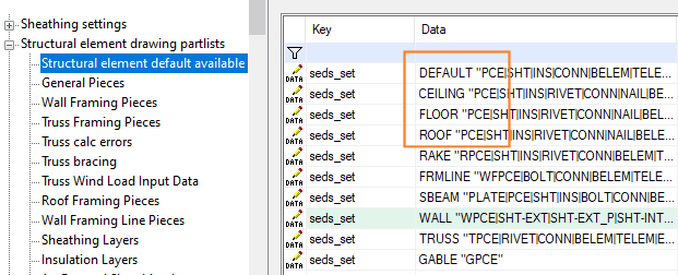 The general PCE set may be used in several sets, for example CEILING, FLOOR, ROOF. The setting will affect all these sets.
