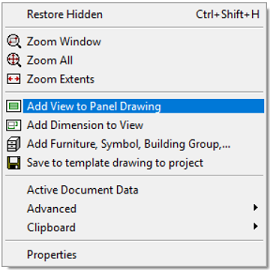 - Select from context sensitive popup menu Add View to Drawing: