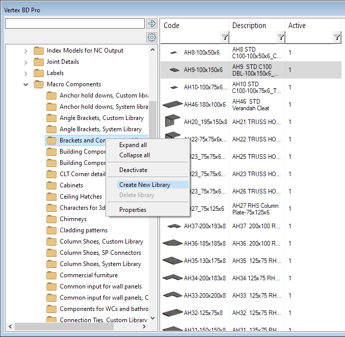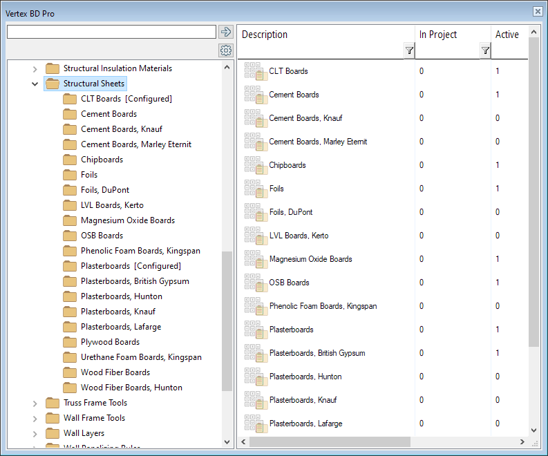 Libraries are now divided into smaller entities according to material and manufacturer. The system may also include country-specific libraries for some materials. The user can now easily adjust which libraries to use and display only those in the interface. This makes selection and browsing faster and the right material easier to find.
