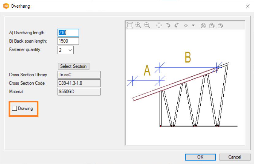 Create a workshop drawing for Truss Overhang members