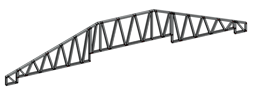 Truss framing now supports drops and raises in the bottom chord shape of the truss to create the example detail as below. To create this shape draw floors or ceilings at different heights and select them when defining the bottom slopes. You can now also use soffits to when defining the below areas to eg define the depth of the soffit supports