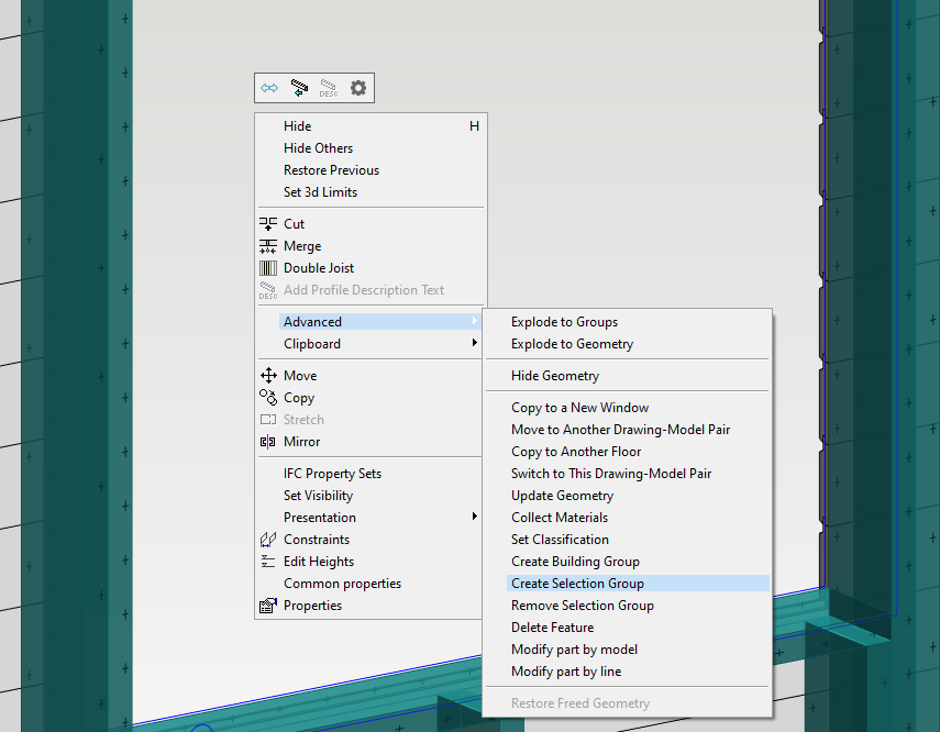You can now define the selected objects as a group. The group can be used to select all parts of the group, thus facilitating the transfer and copying of the group, as well as other suitable tools for editing multiple objects.