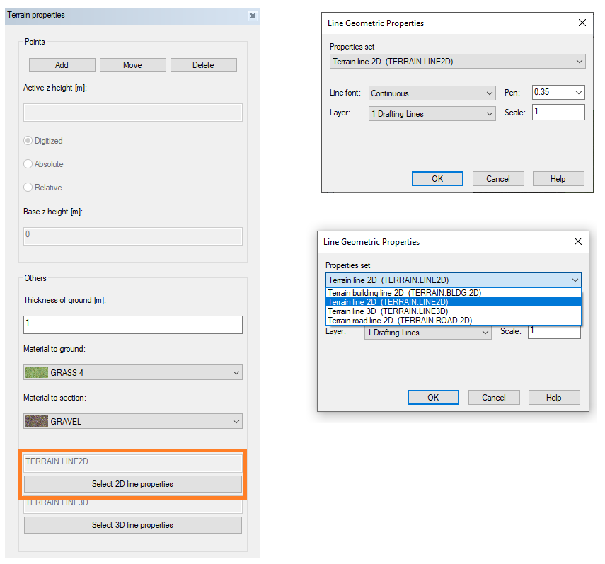 Changing the 2D line properties of the terrain