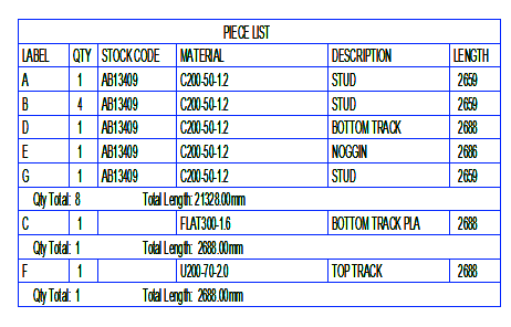Item codes that have been set for profiles, sheets and building components can now appear in the respective schedule