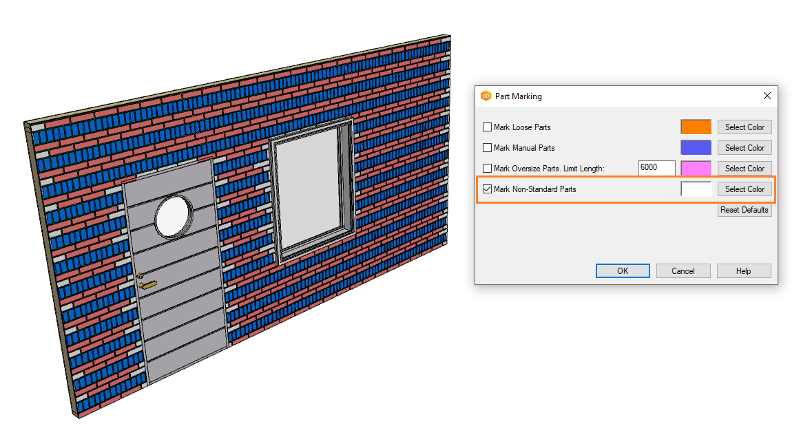 Marking of Non-standard bricks in 3d model view with selected colour (example: White)