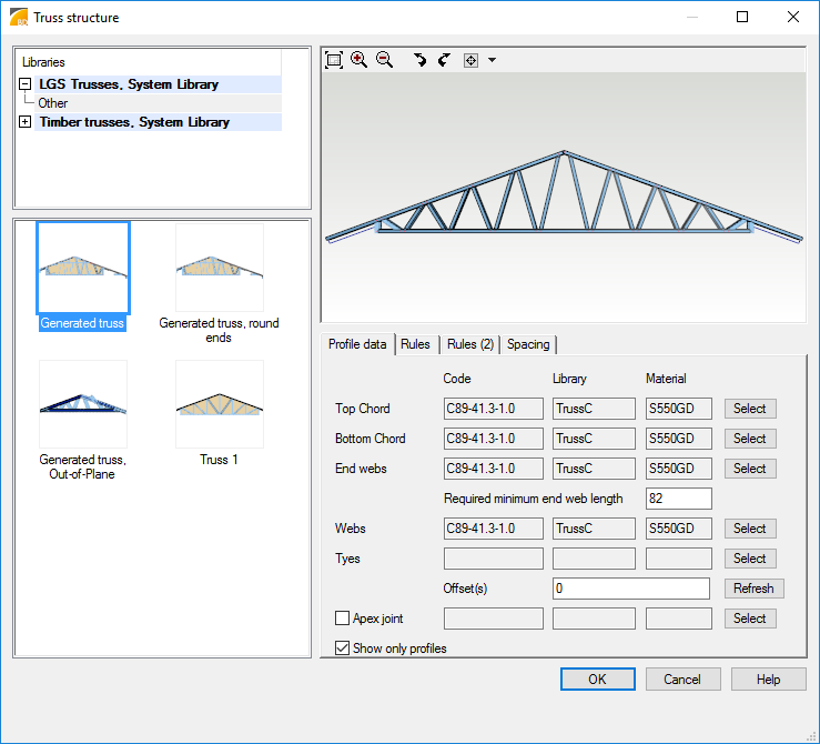 Truss members are generated using rules defined by user.