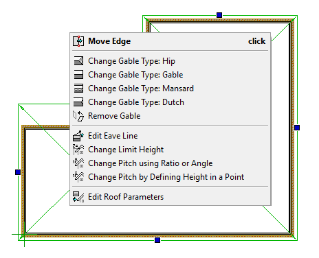 Edge toggles are visible when the sketch is activated. Click the right mouse button over the toggle to open the menu. Edge parameters can be changed in the menu e.g. the gable type.