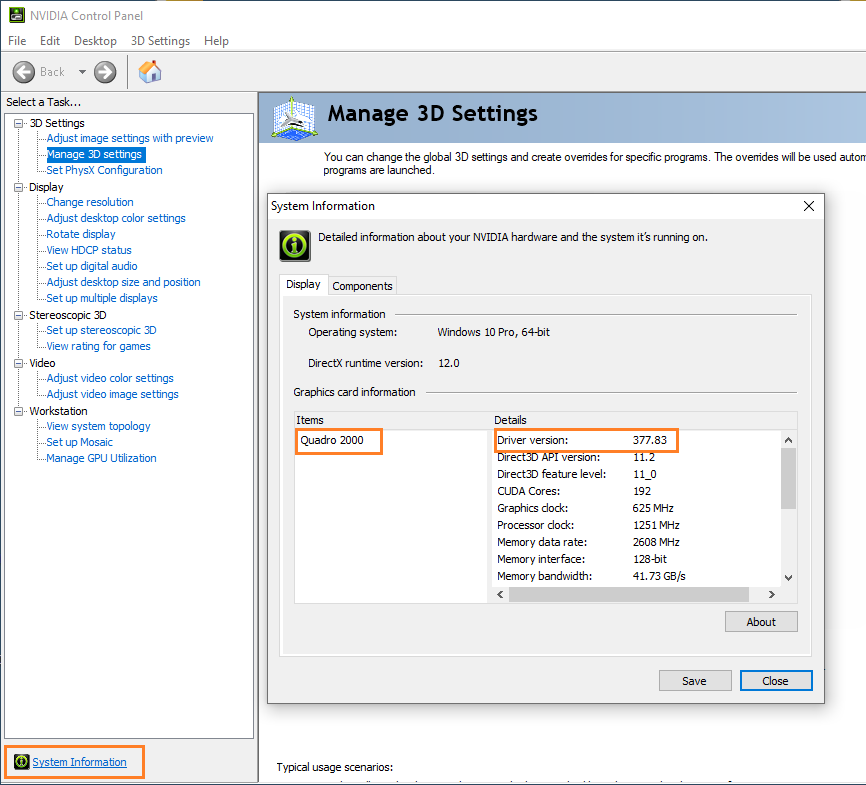 - To find out the graphics card and the driver version, click System Information in the Nvidia control panel.