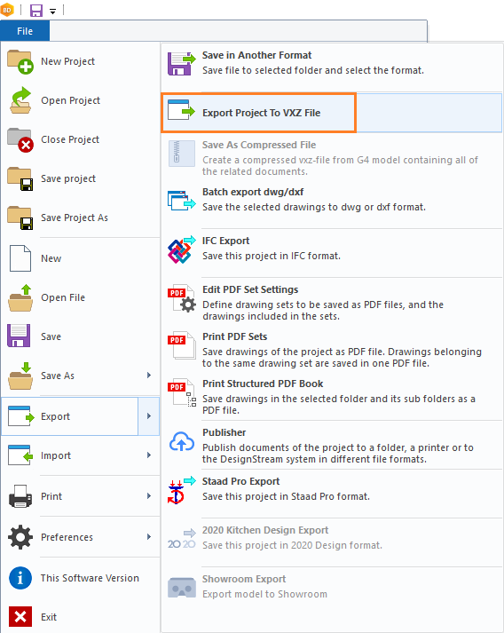 File > Export > Export Project To VXZ File.