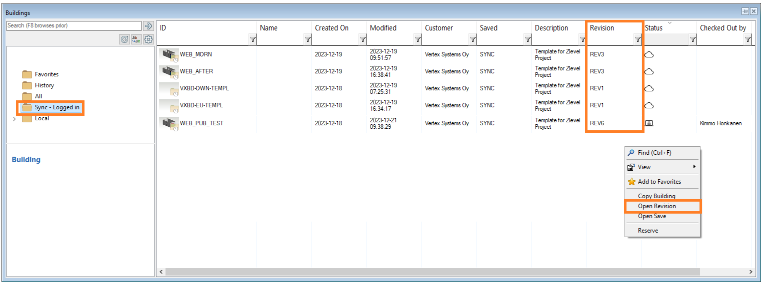 Building browser shows revisions