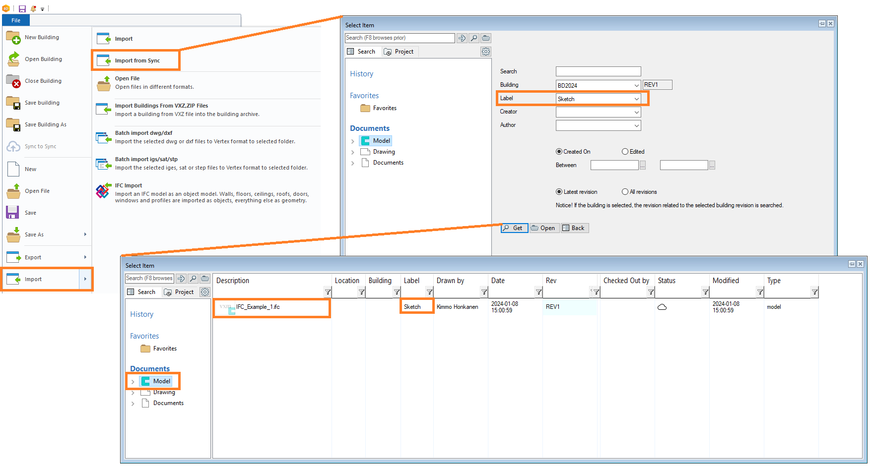 User can import IFC from Sync