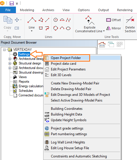 All the project files are saved in the project folder. You can view the location and contents of the project folder as follows: