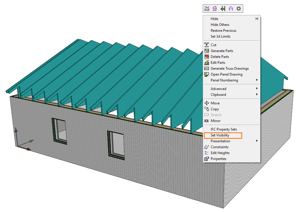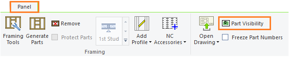 - Select the panel (wiht ALT key pressed), then the function Part Visibility.