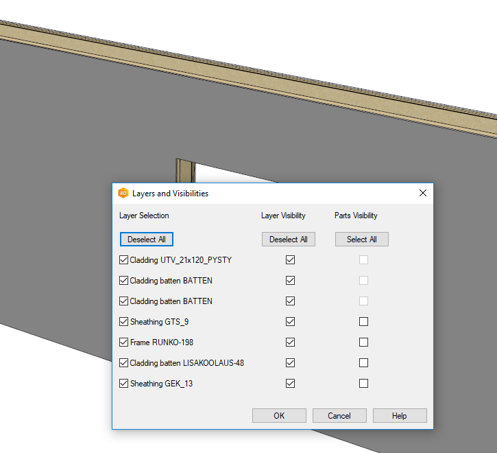 - Protecting parts in a layer does not prevent the editing or the removal of individual parts.