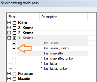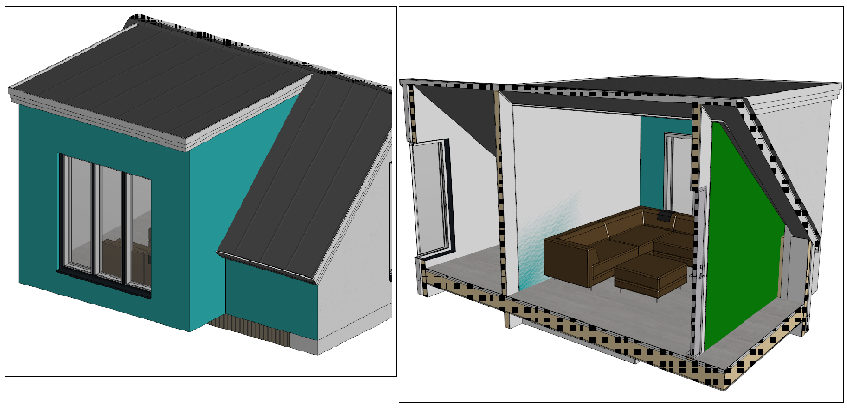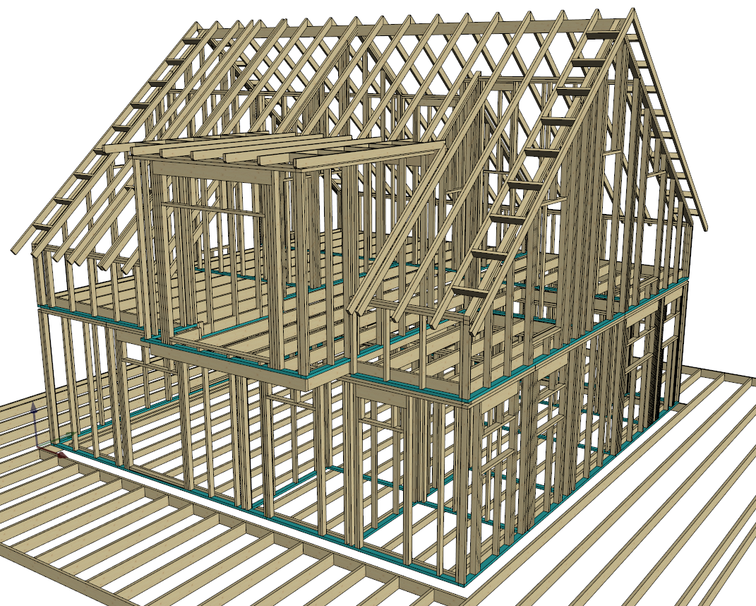 The visibility of trusses / beams in the architectural and framing drawing-model pairs.