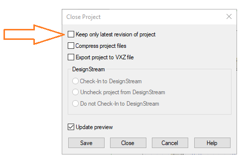 If you want to keep only the latest version of the project in the project folder, select Keep only latest version of project when you close the project.
