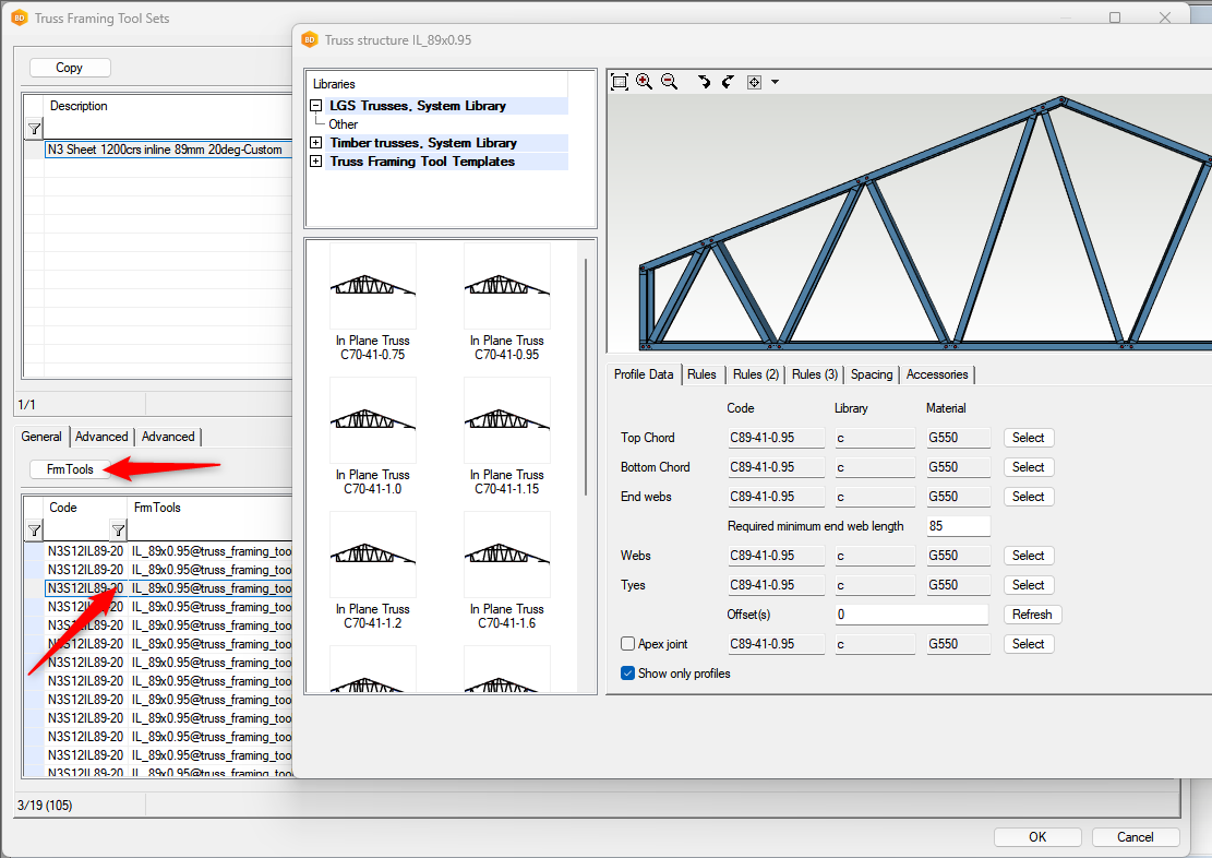 In the past, if you wanted different framing tool settings for different trusses, truss spans or truss loadings, you had to create separate truss templates with the required settings.
