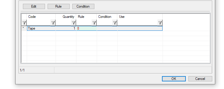 With the selected rule press OK and the "8" is copied back to the tape subassembly rule.
