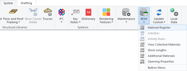 Navigate to System | BOM | Material Register to define codes for components which you wish to have subassemblies collected from.