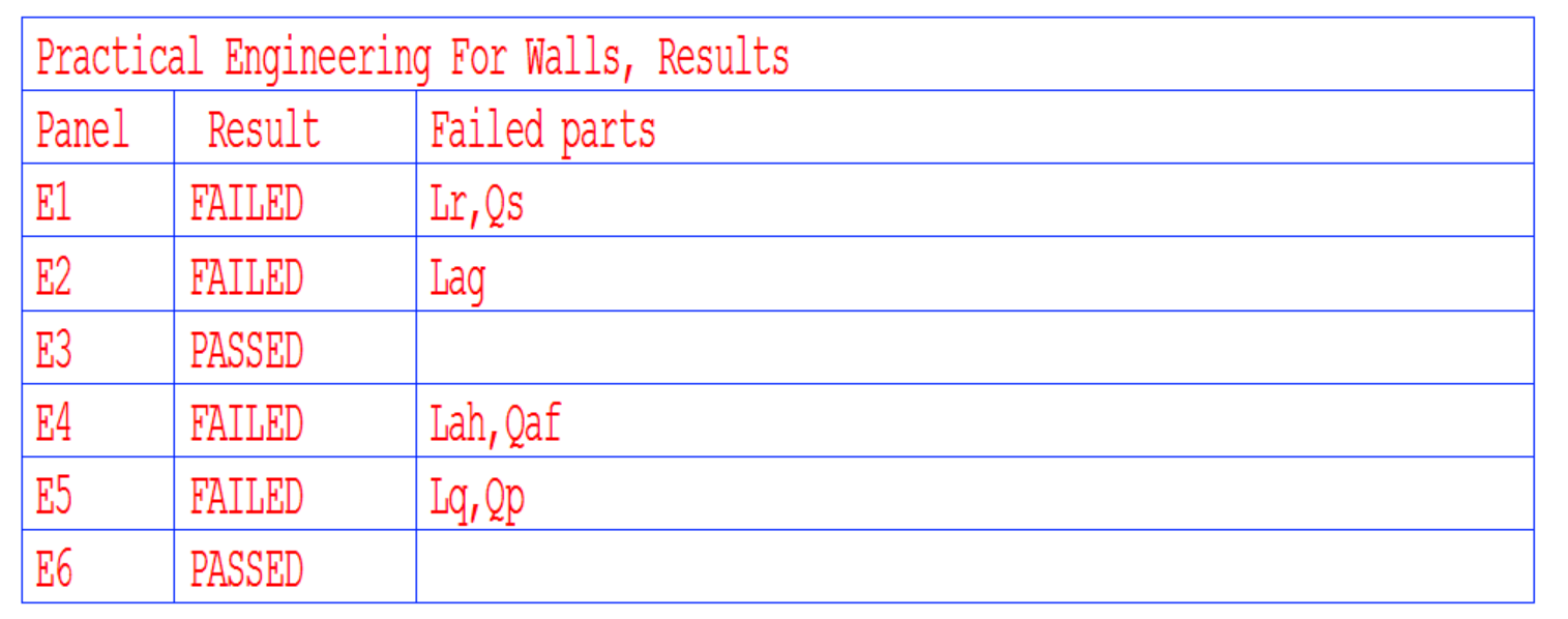 User can find the passed and failed wall panels in the result schedule. The labels of the failed parts can be identified in the wall panel drawings.
