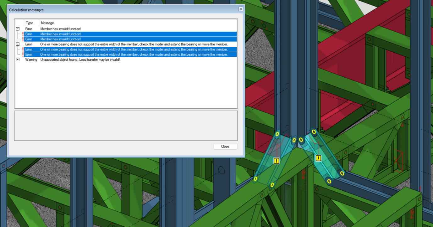 Error: A member has invalid function! One or more bearing does not support the entire width of the member, check the model and extend the bearing or move the member.