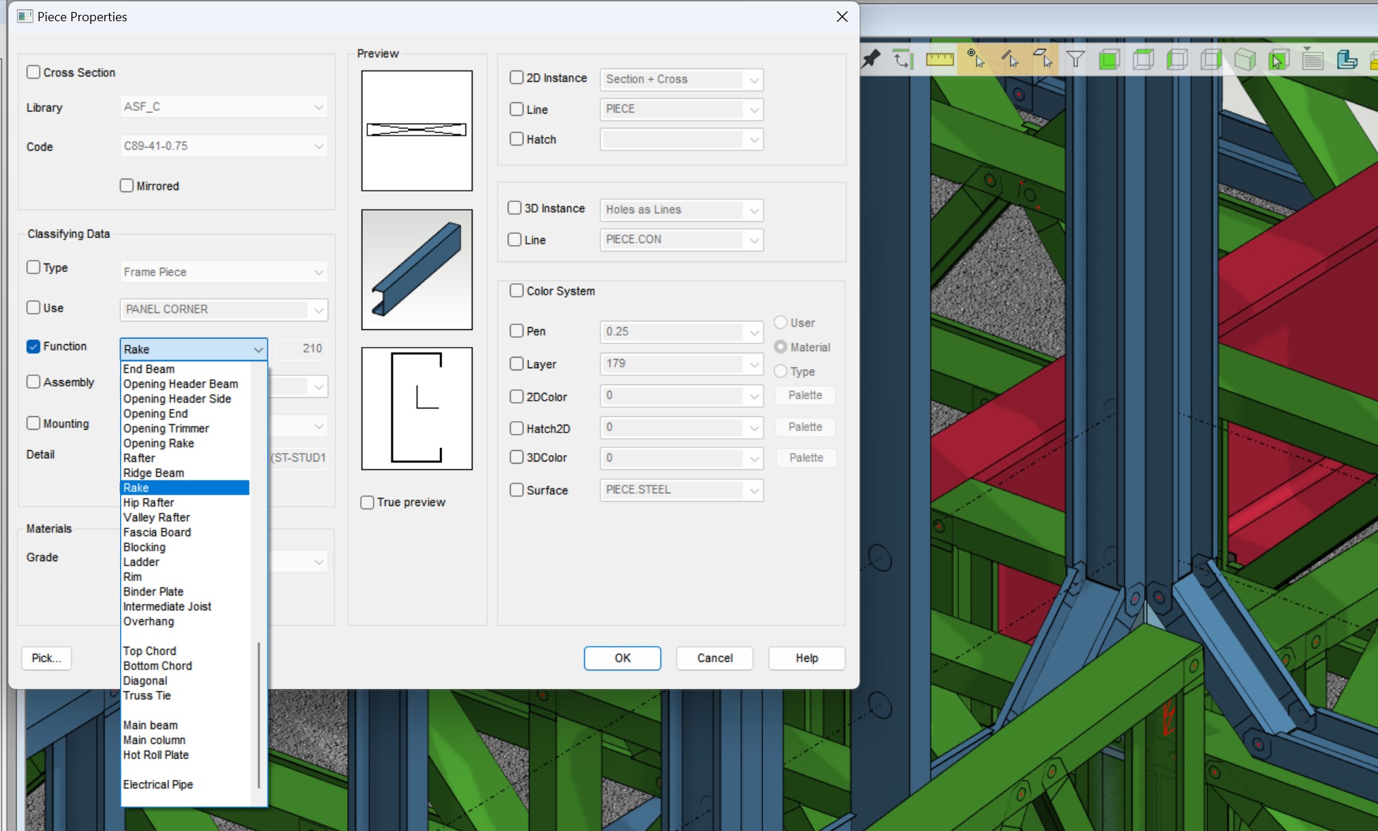 The calculation details for pieces can be found in the property in the right-click menu. You can find the identification of the piece and the maximum load being used. The loads in the table are factored.