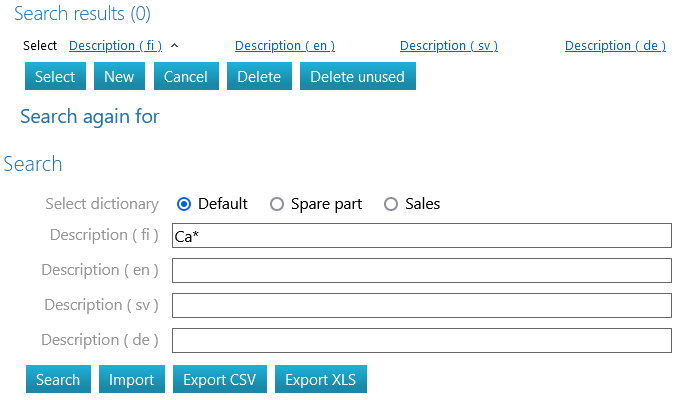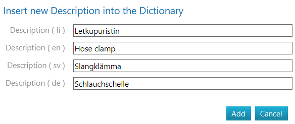 (4) Check if the word to be added is already in the dictionary by entering the word in the Description (fi) field in the opened dialogue window.