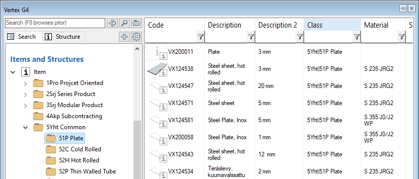 When a profile structure is modeled using items in Flow, the item describing the assembly gets its weight from the volume of the profiles in the model and the density of the associated raw material items (profiles).