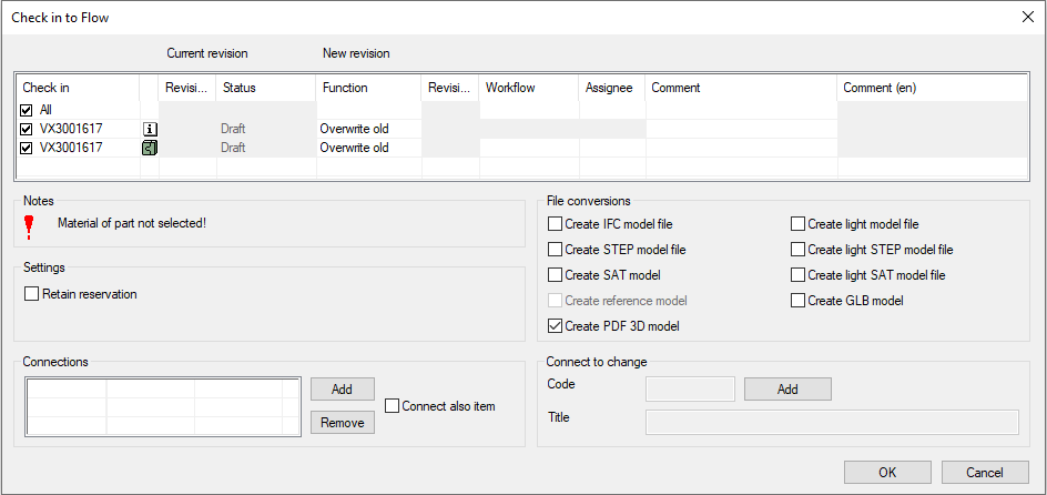 (3) Check in the model to Flow by selecting OK.