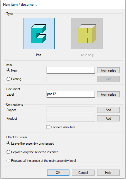 (3) Enter or select an item for the part.