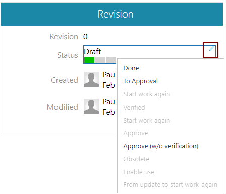 In the menu, you will see the statuses according to the status model of the document. Statuses not allowed by the status model will appear grayed out.