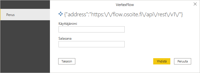 Enter the address of the Flow server from which you want to retrieve data into the text field. With Power BI's Vertex Flow connector, you can target different data queries to different Flow servers by changing the address entered in the field as needed.