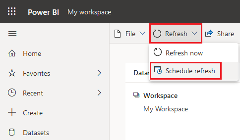 To schedule automatic refresh for your report, select the dataset associated with your report and choose Refresh > Schedule refresh. Follow Microsoft's instructions and configure the refresh to use the gateway you installed earlier.