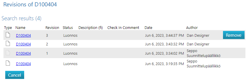 (1) Select the option Item/Model/Drawing/Document/... > Revisions.