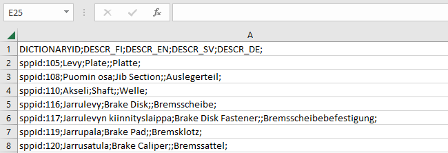 Note: When making changes to the CSV file, do not modify the content of the rows that come before the first semicolon.