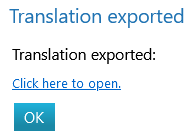 - Flow reports the export in the dialogue window as "Translations exported."