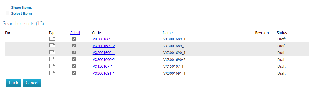 In the search window, select both Model (Vertex) and Drawing (Vertex) from the Type dropdown menu