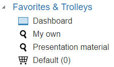 Users often need to repeatedly perform the same searches in the Flow system, such as sales contracts created in the last two weeks or items under subcontracting modified in the last month. The trolley is a convenient way to store the results of searches made at a specific point in time, but it is static by nature. The content of the trolley does not change, even if the same criteria would now yield different results. A saved search always functions in real-time and thus retrieves the search results anew each time the saved search is used. Both elements are stacked vertically on the left side of the user interface. The saved search is labeled with a magnifying glass.