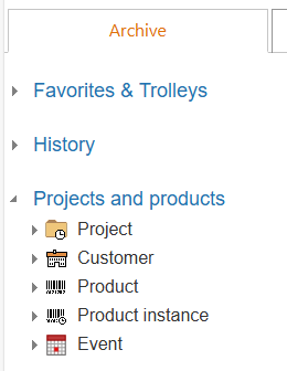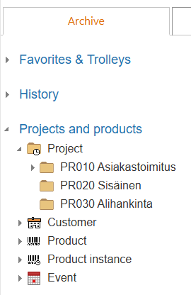 Open "Projects and Products" from the hierarchy tree and click on the triangle in front of the project.