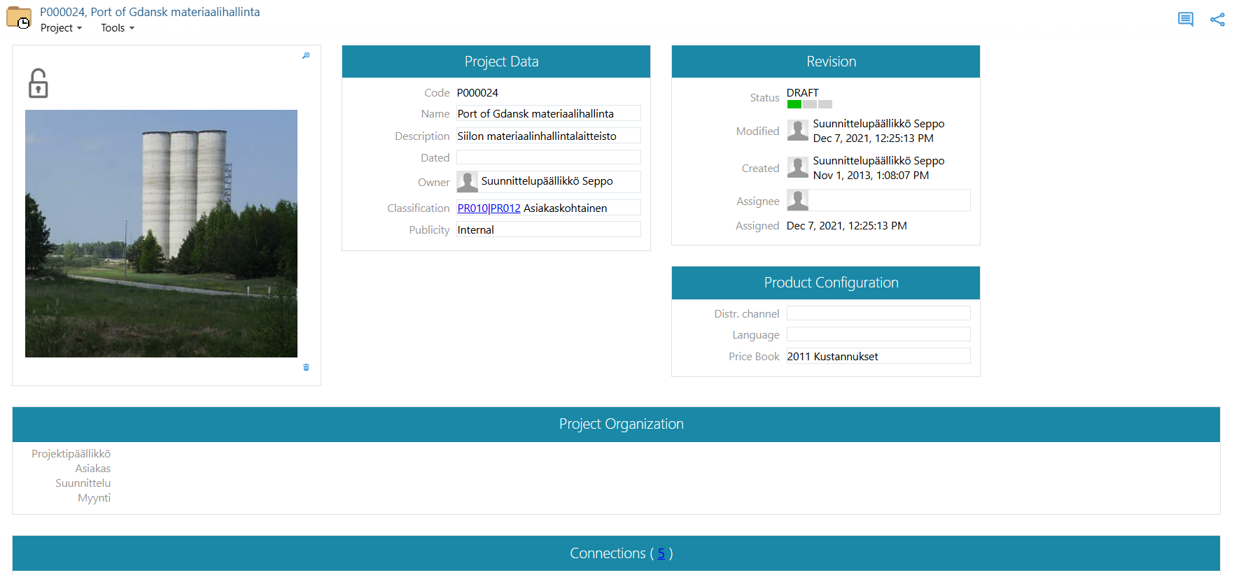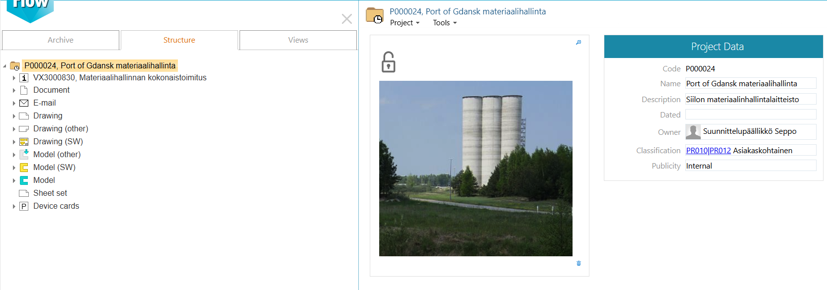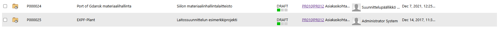 - There you will see, among other things, the project you opened: P000024, Port of Gdansk material management