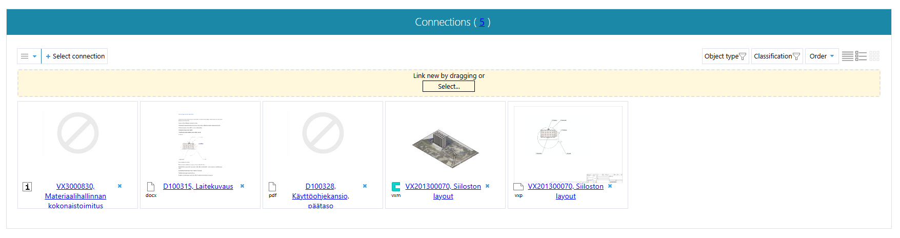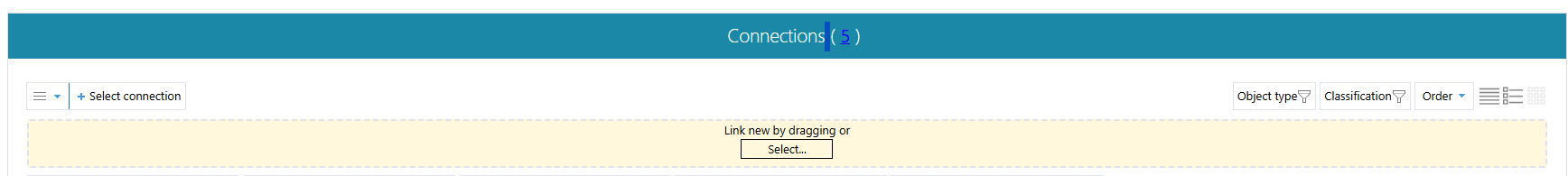- Click on the title of the Connections section to view the objects related to the project.