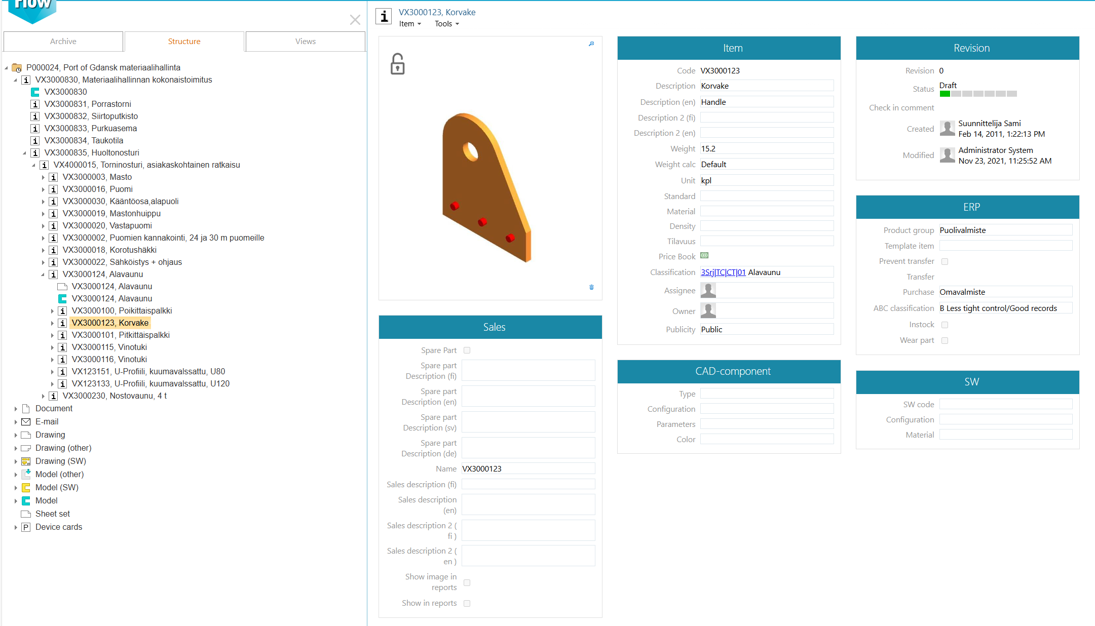 - You will also see models or drawings related to the item in the tree.
