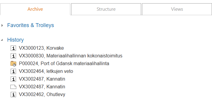 Open the structure of the item by clicking on the items revealed in the structure.