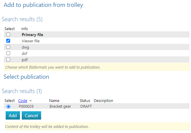 Add the contents of the trolley to the publication