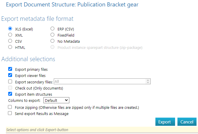 The program generates a compressed Excel file containing the documents included in the Publication.