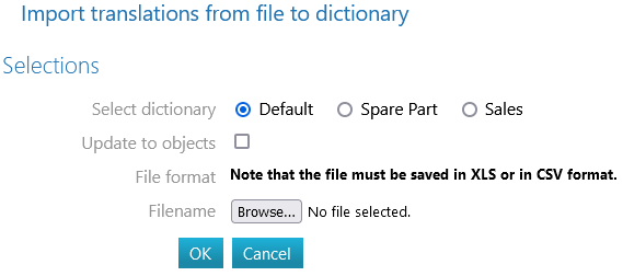 Dictionary update is based on a CSV or XLS file where the vocabulary with translations has been edited to meet the needs.