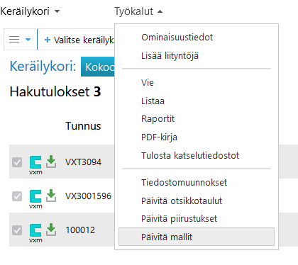 If you wish to update multiple models, you can achieve it using a trolley. Add the models to a trolley and choose Tools > Update models in the trolley. If the trolley contains models, which are in a frozen state, or documents which are not Vertex models, those documents are skipped, and only the applicable models are added to the background converter's update queue.