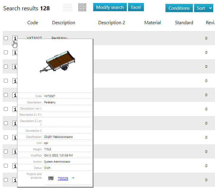 Once you have performed the object search, you will receive the search results either as a list or as boxes.