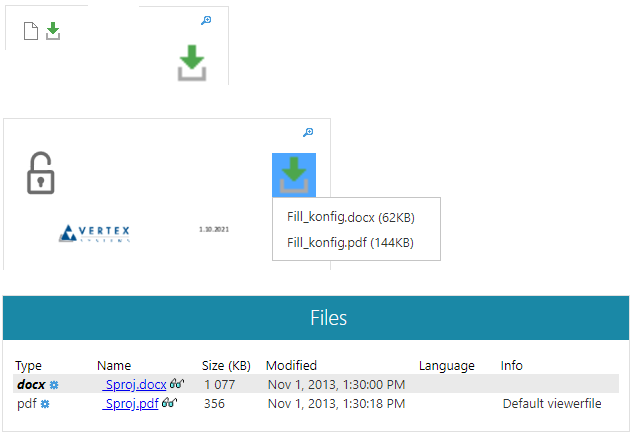 Click on the green arrow, which will prompt the program to display a list of files associated with the object.